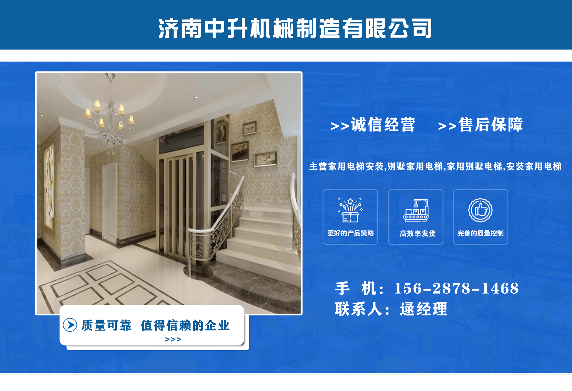 濟南中升機械制造有限公司主營家用電梯安裝,別墅家用電梯,家用別墅電梯,安裝家用電梯等業(yè)務,質量可靠,值得信賴! 公司為客戶提供免費上門測量,根據(jù)實際情況1對1服務,保障符合用戶需求,終身提供售后服務,讓用戶買的舒心用的放心。匠心團隊,打造信賴產品,我們有團結、奮進拼搏的匠心團隊,為您提供可信賴的品質保證。 從創(chuàng)立以來一直嚴格執(zhí)行質量管理體系、環(huán)境管理體系等相關標準管理體系,“顧客滿意”是我們始終如一的追求。我們有屬于自己培養(yǎng)的安裝隊伍,24小時服務電話,為您提供可靠的服務與支持。 我們的愿景是建設國內具有影響力的電梯公司,做城市美好空間的好伙伴。...